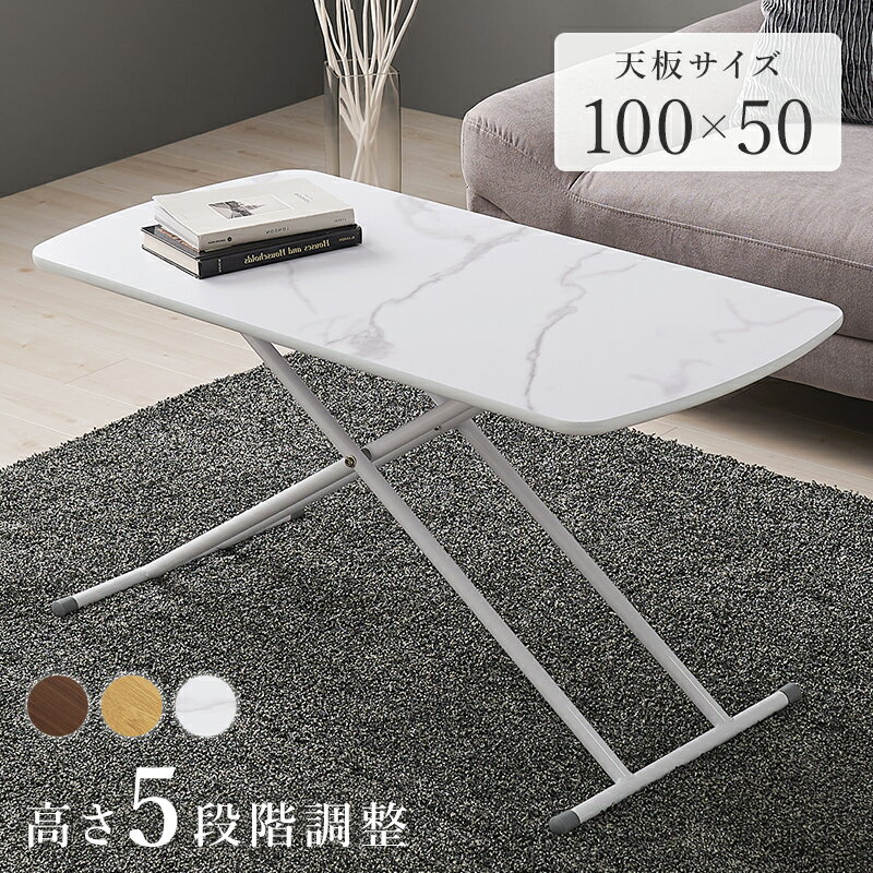 テーブル 昇降式 リフティングテーブル 100×50 高さ調整 5段階 長方形 折り畳み ブラウン/マーブルホワイト/ナチュラル 送料無料