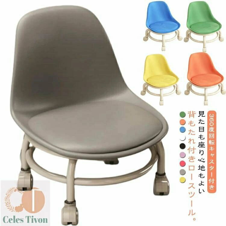 背もたれ付き ロースツール キャスター付き 回転椅子 ロー 椅子 チェア ミニ スツール 低め 子供 腰掛け 玄関 フットケアスツール フットケアイス フット ネイル 施術 作業 イス 椅子 チェア 家事 イス