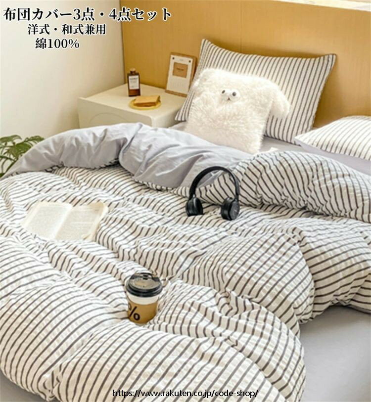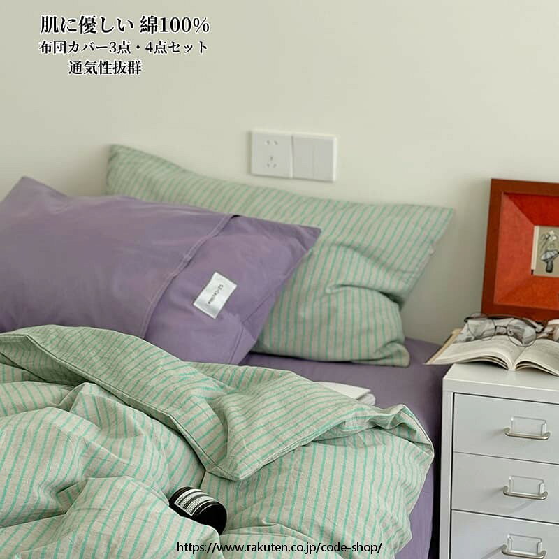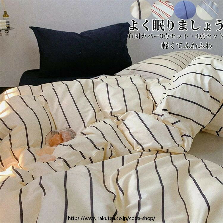 布団カバーセット 3点セット 枕カバー INS風 掛け布団カバー シングル ダブル フラットシーツ ボックスシーツ 布団カバー 4点セット ストライプ柄 敏感肌 寝具カバーセット 洗い替え 肌に優しい 掛ふとんカバー 寝具 ベッドカバーセット 丸洗いOK 通気性 四節適用