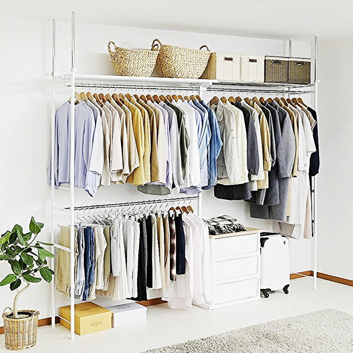 ハンガーラック ダブルハンガーラック 突っ張り スチール製 壁面収納 バリエーションクローゼット 収納 高さ調整可能 伸縮式 省スペース 北欧 おしゃれ 組み立て簡単 ホワイト