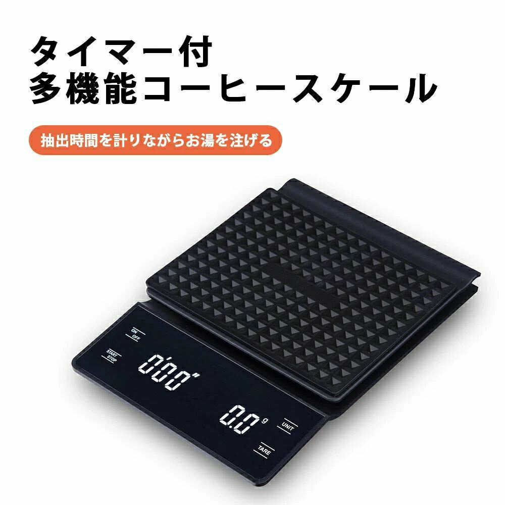 コーヒースケール キッチンスケール 充電式 電池式 デジタルスケール 3kg タイマー機能付き 0.1g単位 電子はかり コンパクト おしゃれ