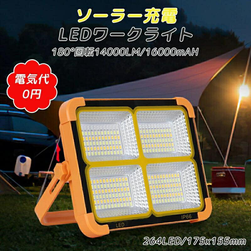 投光器 led 充電式 投光器 強力 14000LM 1600mAH ソーラー充電 USB充電 150W IP66防水 180°調整 防災グッズ アウトドア