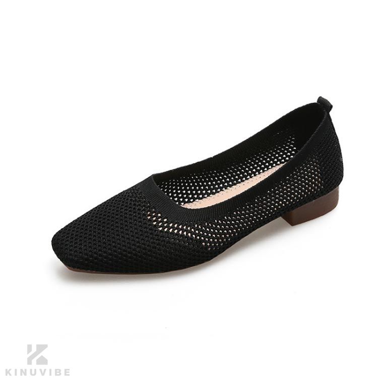 パンプス スクエア フラットシューズ スリッポン 春夏 ニット 編み込み メッシュ 痛くない 歩きやすい 走れる ローヒール カジュアル 通勤 通学 柔らか 婦人靴 履きやすい 大きサイズ