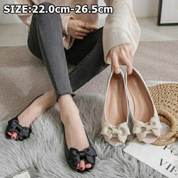 パンプス オープントゥ リボン付き レディース フォーマルシューズ ビジネス フラット 仕事 安定感 ぺたんこ ローヒール 1cm 美脚 通勤 カジュアル お呼ばれ パーティー イベント 走れる 疲れにくい ファッション 婦人靴 オフィス オープントゥ ローヒール フラットシューズ
