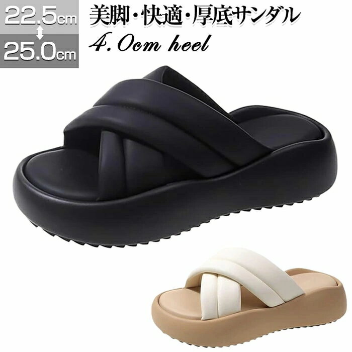 クロスアッパー ソフト サンダル レディース 厚底サンダル レディース 厚底 サンダル【4cmヒール】厚底スリッパ 人間工学 柔らかい 歩きやすい 美脚 脚長 滑り止 軽量 幅広 通気 快適 耐磨耗 春 夏 秋 可愛い カジュアル 外履き ビーチサンダル