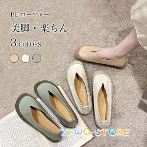 ローファー レディース PUレザー カジュアルシューズ フラット底 ラウンドトゥ PUローファー おしゃれ 靴 楽ちん フラットシューズ スリッポン
