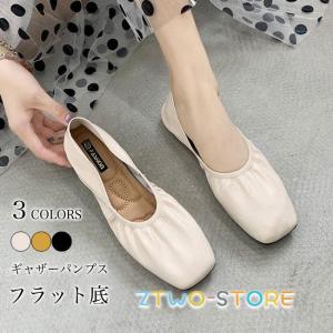 パンプス レディース フラット底 走れるパンプス 痛くない ギャザーパンプス レトロ 歩きやすい ローファー フラットパンプス スクエアトゥ おしゃれ