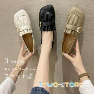 ローファー レディース スクエアトゥ フラットシューズ ギャザー PUレザー シューズ フラット底 楽ちん パンプス 歩きやすい 痛くない PUローファー