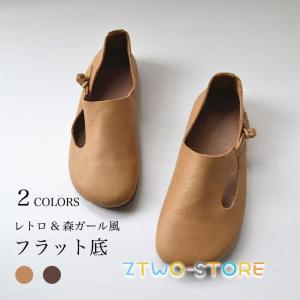 ローファー レディース フラットシューズ 森ガール 靴 高級感 レトロ 楽ちん カジュアルシューズ フラット底 本革 ラウンドトゥ スリッポン
