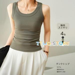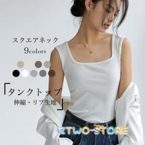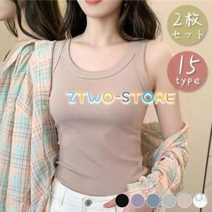 タンクトップ 丸首 レディース 2枚セッ トップス インナー タンク ストレッチ 肌着 リブ 春 夏 おしゃれ シンプル ベーシック かわいい 伸縮性