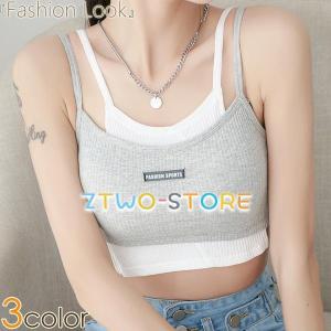 キャミソール ショート丈 レイヤード風 ブラジャー ストライプ リブ レディース