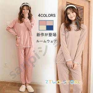 ルームウェア 2点セット レディース パジャマ 春夏秋冬長袖 丸首 寝巻き 長ズボン 体型カバー SDRR-2800