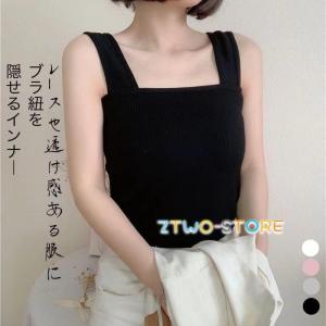 タンクトップ レディース 襟ぐり おしゃれ 無地 インナー ノースリーブ トップス シンプル 定番インナー 肌着 コットン 服 キャミソール チラ見え防止 ブラ紐隠