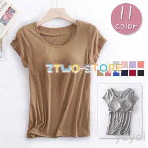 bra-tシャツ 丸首 レディース トップス Tシャツ ルームウェア 半袖 ブラトップ 春 夏 おしゃれ シンプル かわいい 散歩