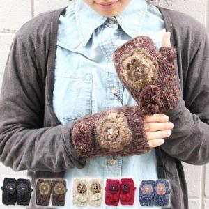 手袋 / フラワー ボンボン 裏ボア KNIT CUFF GAITER 手袋 / 指なし / 返品・交換不可