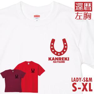 還暦祝い 左胸 名入れ 還暦Tシャツ 午 うま 馬 干支 男性 女性 2026年 赤 還暦のお祝い 絵 プレゼント 60歳 かわいい おしゃれ 父 母 贈り物 競馬 蹄鉄 1501 085
