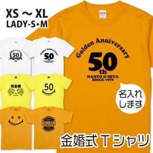 敬老の日 金婚式 Tシャツ プレゼント お祝い 贈り物 パーティ 飾りつけ 衣装 撮影用 名入れ ゴールド 結婚記念 50周年 夫婦 おそろい 家族 1501 1500 5001 085