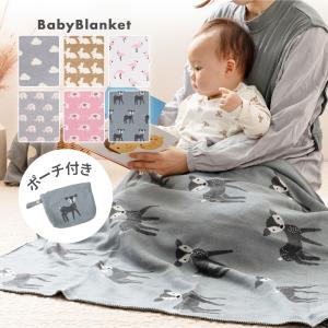 洗えるベビーブランケット 約80×100cm 270092640 コットン100% ニット生地 ポーチ付き ギフト 出産祝い プレゼント アニマル ブランケット