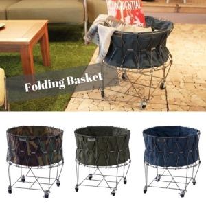 フォールディングバスケット MIP-90 収納 かご 洗濯 ランドリーバスケット 折りたたみ式 キャスター付き おしゃれ 迷彩 グリーン ネイビー