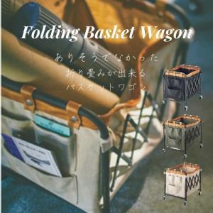 フォールディングバスケットワゴン MIP-96 収納 折り畳み かご ワゴン キャスター付き コンパクト おしゃれ ブラック グリーン アイボリー