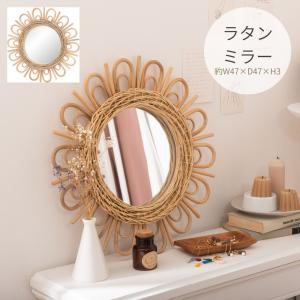 ミラー MR-714 手編み ラタンミラー 壁掛け 鏡 ミラー 丸型 ウォールミラー 壁かけ 卓上 アジアン 北欧 おしゃれ かわいい 化粧鏡 寝室 ドレッサー
