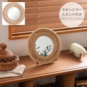 ラタンミラー MR-716 壁掛け 鏡 ミラー 丸型 ウォールミラー 壁かけ 卓上 アジアン 北欧 おしゃれ かわいい 化粧鏡 寝室 ドレッサー