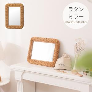 ラタンミラー MR-719 壁掛け 鏡 ミラー 四角 ウォールミラー 壁かけ 卓上 アジアン 北欧 おしゃれ かわいい 化粧鏡 寝室 ドレッサー