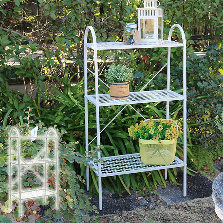 【メーカー直送】 屋外 おしゃれ 庭 オープン3段ラック ツイル アイボリーホワイト 白 TW002WHT 棚 収納 ガーデニング 園芸 目隠し