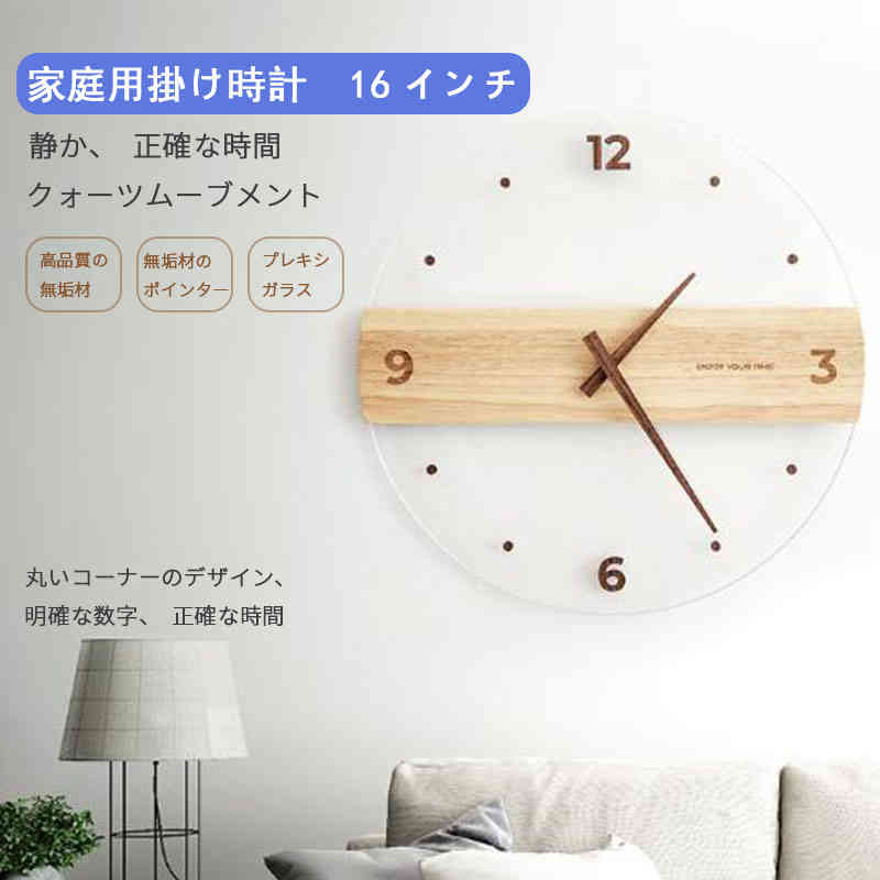 お買い物マラソン【P5倍】シンプルな家庭用掛け時計 プライウッド材料 掛時計 掛け時計 壁時計 シンプル 円形デザイン ウッド素材 14インチ リビングルーム ベッドルーム オフィス 学校適用