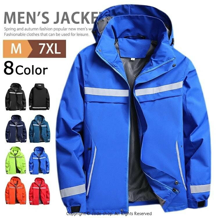 ウインドブレーカー 反射テープ 作業着 作業服 警備員 安全服 ワークジャケット マウンテンパーカー スタンドジャケット カジュアル スポーツ ランニング ウォーキング ジョギング イベント ユニホーム 撥水 防風 高視認 夜間作業 工事現場 薄手 春秋