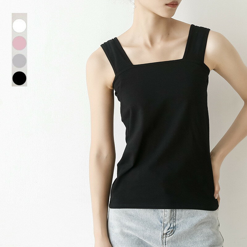 一枚あれば安心!ブラ紐隠しインナー ブラ紐隠し タンクトップ インナー キャミソール レディース 伸びる ストレッチ シンプル 伸縮性 重ね着 タンク コットン 黒 白 トップス タンク 綿 ノースリーブ 送料無料