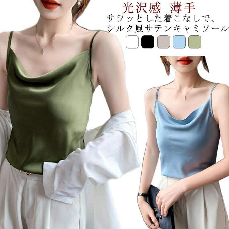 キャミソール OL トップス 大人 ノースリーブ 大人 シルク インナー 肌着 カップなし 光沢感 キャミ タンクトップ 重ね着 レイヤード フォーマル シンプル 無地 レディース アンダーウェア 薄手 上品 シンプル 普段着 サテン