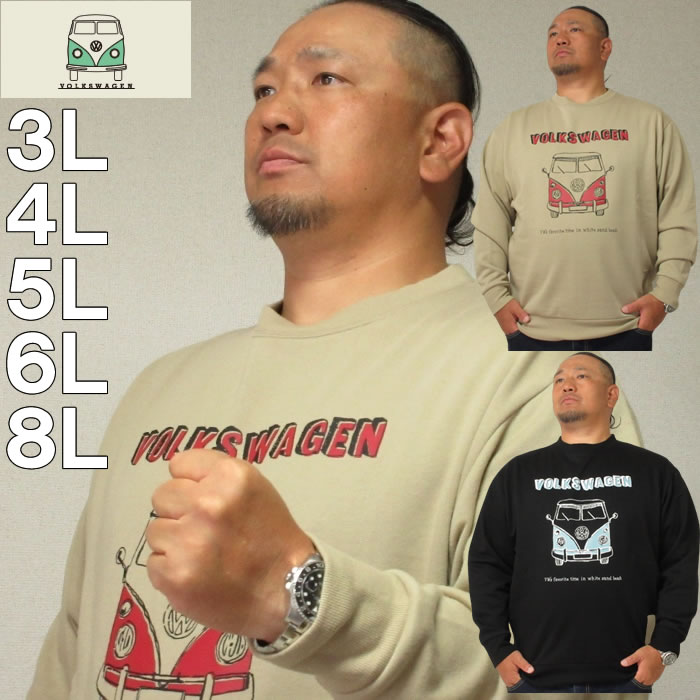 大きいサイズ メンズ VOLKSWAGEN 裏起毛 クルー トレーナー(メーカー取寄)フォルクスワーゲン 3L 4L 5L 6L 8L 大きい サイズ キングサイズ ビッグサイズ おしゃれ デビルーズ ブランド ルームウェア 部屋着 スウェット スエット