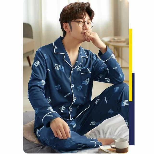 前開け 春秋 ルームウェア 2点セット パジャマ 長袖 男性用 大きいサイズ パジャマ 部屋着 寝巻き ナイトウェア 紳士 メンズ
