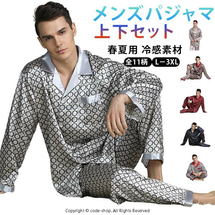 メンズ 涼しい パジャマ 長袖 春夏 通気性 長袖 薄手 ナイトガウン 前開き 花柄 大きいサイズ 部屋着 パジャマ セットアップ 上下セット メンズ 快眠 シルク風 紳士 スリップ 男性 記念日 夏用 総柄 プリント プレゼント 父の日