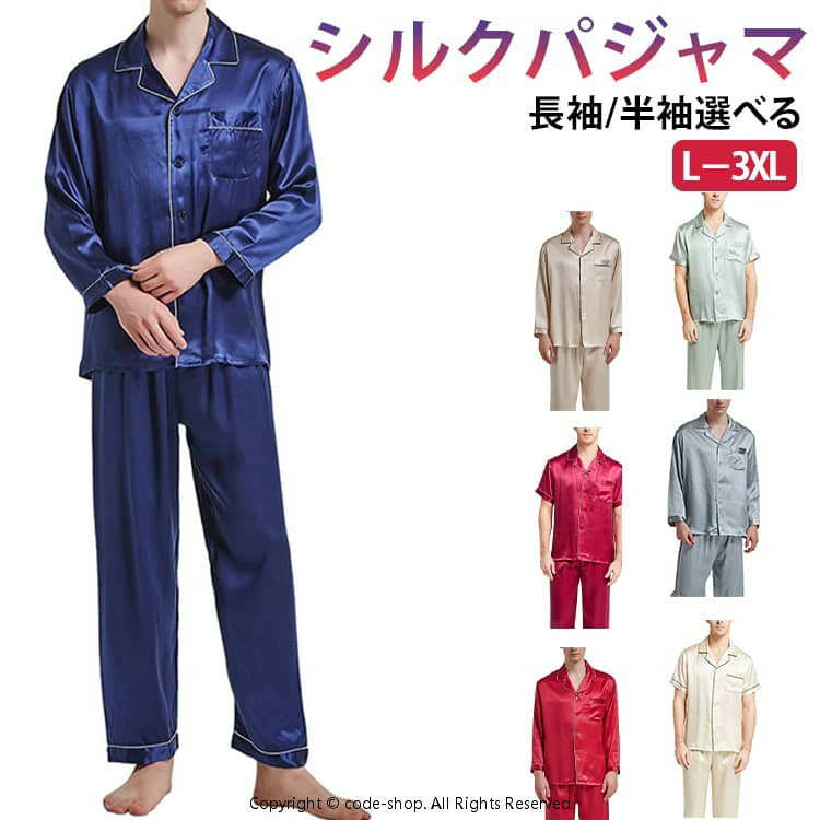 メンズ 半袖 パジャマ 部屋着 セットアップ 前開き 天然シルク メンズパジャマ 夏 柔らかい 冬 長袖 上下セット 秋 敏感肌 シルク 男性 春 ナイトウェア サテン メンズパジャマ 吸汗 入院 寝間着 寝巻き L LL 3L 4L 敬老の日 ギフト 父の日