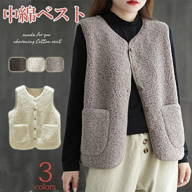 ボアベスト レディース インナー アウター チョッキ ジレ 前開き もこもこ ゆったり 着痩せ 暖かい 防風 通学 通勤 可愛い