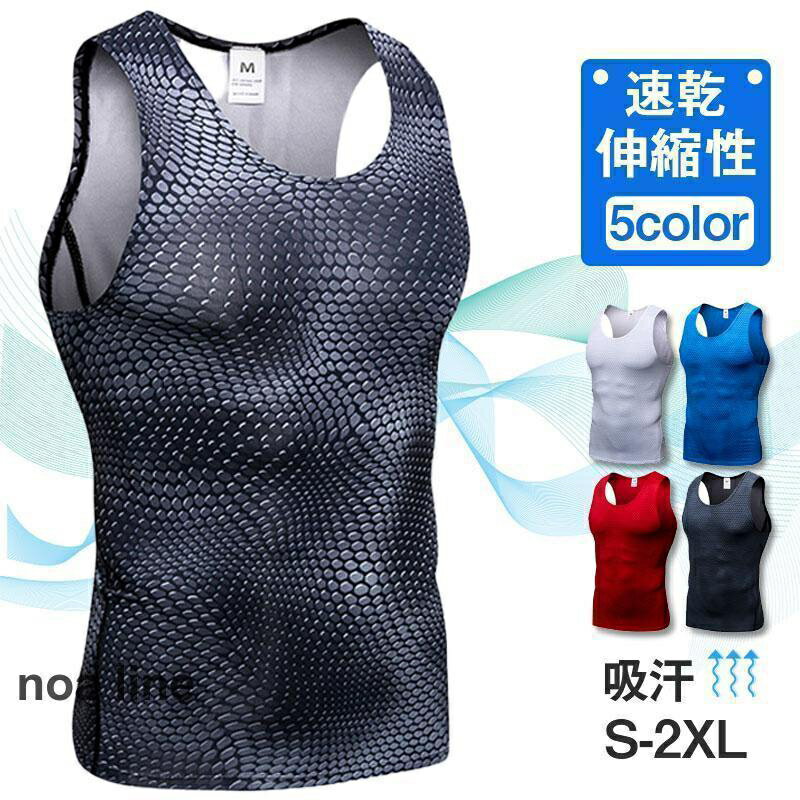 タンクトップ メンズ コンプレッションウェア ノースリーブ インナー スポーツ アンダー 加圧 ランニング ジム 伸縮性 吸汗 速乾