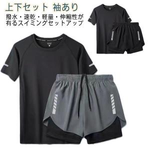ハーフパンツ 大きいサイズ 上下セット セットアップ メンズ ラッシュガード 半袖 セット 水着 水着 袖あり かっこいい 男性用 パパ 半袖 パパ水