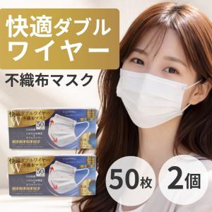 マスク 不織布 ヒロコーポレーション マスク 快適ダブルワイヤー不織布マスク 3D 50枚 ホワイト ふつうサイズ 2071398 2個