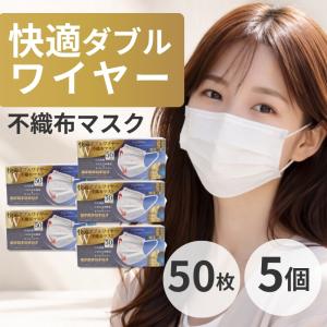 マスク 不織布 ヒロコーポレーション マスク 快適ダブルワイヤー不織布マスク 3D 50枚 ホワイト ふつうサイズ 2071398 5個