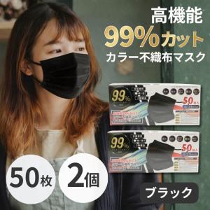 不織布マスク ブラック ヒロコーポレーション 高機能99%カットカラー 50枚 ふつうサイズ BK 2個