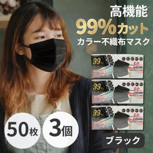 不織布マスク ブラック ヒロコーポレーション 高機能99%カットカラー 50枚 ふつうサイズ BK 3個