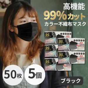 不織布マスク ブラック ヒロコーポレーション 高機能99%カットカラー 50枚 ふつうサイズ BK 5個