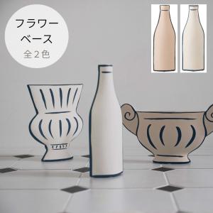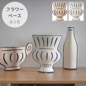 フラワーベース CLY-82 花器 花瓶 花びん かびん フラワースタンド 2D 平面 平面的 手描き アート 陶器 陶器製 ドライフラワー 枝物 おしゃれ シンプル モダン