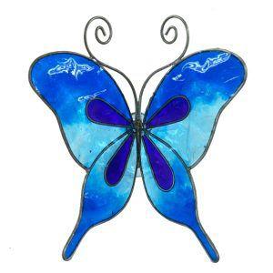 アジアン雑貨 蝶のウィンドウデコレーション ブルー×ウォーター Mサイズ アジア工房 9482