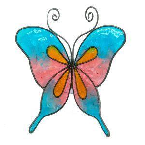 アジアン雑貨 蝶のウィンドウデコレーション ピンク×ウォーター Mサイズ アジア工房 9483