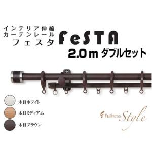 【完売】木目調伸縮 ダブル カーテンレール 木目ホワイト ライトベーッジュ フェスタ 2.0mW (沖縄・離島不可) I7751