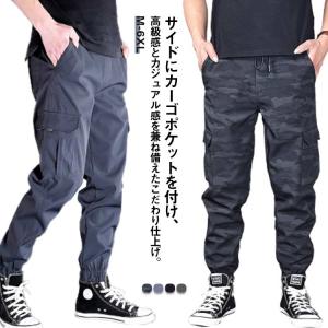 カーゴパンツ メンズ 春秋 無地 迷彩柄 イージーパンツ ミリタリー ワークパンツ ゴルフ スポーツウェア ウエストゴム 長ズボン 裾絞り ボトムス