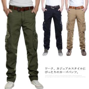 (送料無料)ロングパンツ カーゴパンツ ロング丈 メンズ ゆったり 長 無地 メンズ ミリタリー ストレッチ ポケット 半ズボン 短パン カジュアル